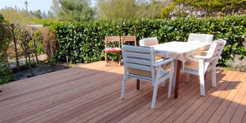 2022 gab es so einiges Neues im Ferienhaus und drumherum. Die alten Terrassen hatten ausgedient und neue mussten her. Größer und schöner sollte es werden und so ergänzt jetzt eine Natursteinterrasse die runderneuerte Holterrasse. Außerdem hat die Dachgeschosswohnung jetzt auch eine eigene gemütliche Holzterrasse, die sich direkt am Fuß der Balkontreppe befindet (s. Foto).Auch drinnen ist die Zeit nicht stehengeblieben, neue Polsterstühle und Teppiche in beiden Wohnungen. Und ein neuer großer Fernseher.